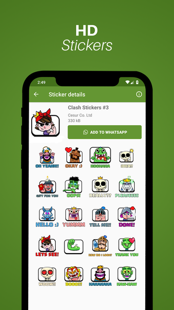 このアプリは使いやすいです。追加したいステッカーパックを選択し、「WhatsAppに追加」ボタンをクリックします。WhatsAppを開き、チャットを開始し、絵文字ボタンをクリックし、ステッカーを選択し、最近追加したステッカーアイコンをクリックして共有します。このアプリには、ステッカーの追加にヘルプが必要な人のためのビデオチュートリアルもあります。なお、このアプリはSupercellとは一切関係がなく、Clash Royaleのハックや無料のジェムを提供していませんことをご注意ください。